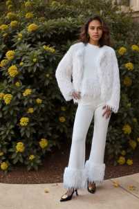 Pantalone in maglia elasticizzato con pelliccia sulla caviglia ed elastico in vita.
