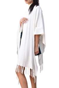 Mantella in maglia elsaticizzata con frange.