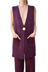 Gilet lungo elasticizzato a scollo a V con bottone grande.