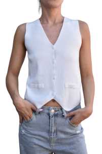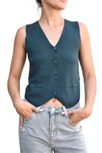 Gilet in maglia elsaticizzato, scollo a V, Chiusura con bottoncini.