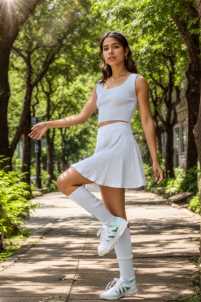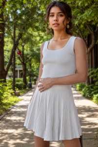 Gonna elasticizzata corta, con trama verticale.