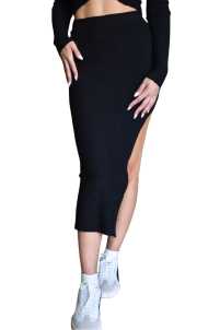 Gonna aderente trama a spiga, elastico in vita e spacco laterale.