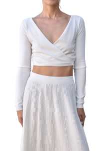 Maglia elasticizzata incrociata, scollo a V, maniche lunghe.