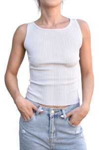 Canotta smanicata elasticizzata con trama verticale.