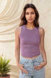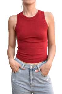 Canotta smanicata elasticizzata semplice, con merletto lavorato.