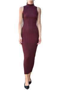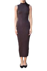 Abito elasticizzato a costina, smanicato con collo a vulcano.