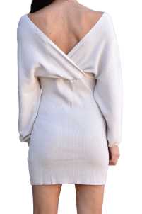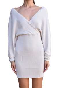 Vestitino kimono elasticizzato in maglia a costine. Scollo a V, manica scesa.