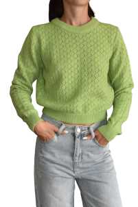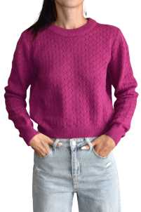 Maglione elasticizzato a girocollo con trama rombo e maniche lunghe.