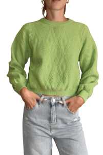 Maglione elasticizzato traforato, trama a rombo grande con girocollo e maniche lunghe.