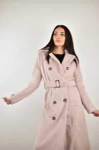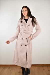 Cappotto lungo, collo revers, maniche lunghe, chiusur doppio petto con bottoni e cintura.