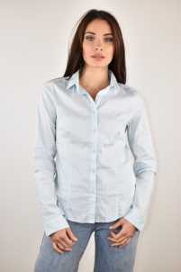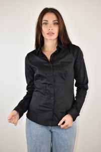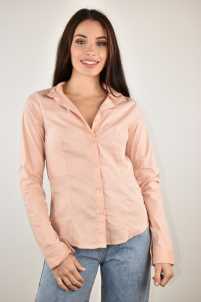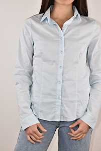 Camicia avvitata elasticizzata, collo revers, maniche lunghem chiusura con bottoni.