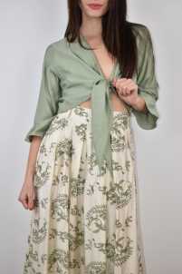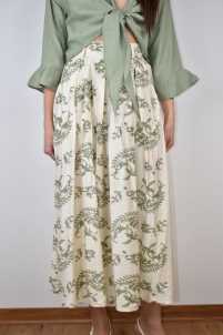 Pantalone fantasia in viscosa, chiusura con zip e bottone.