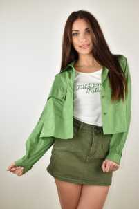 Camicia over in cotone, collo revers chisura con bottoni.