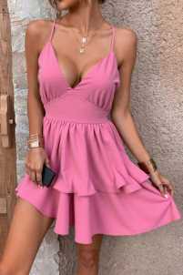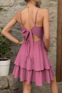 Vestito a balze con bretelle regolabili, fiocco e apertura sul retro.