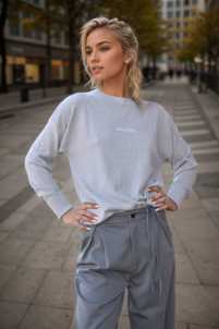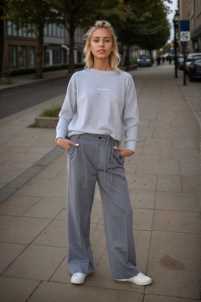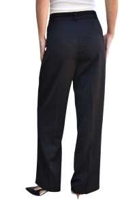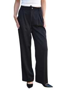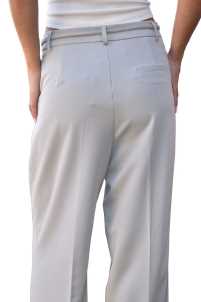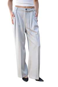 Pantalone a gamba larga con laccetto, tasche laterali, bustino fisso chiusura con zip e bottone.