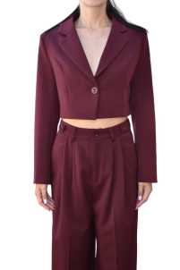 Giacca crop over, completo Sharon, collo revers, maniche lunghe, chiusura con bottone.