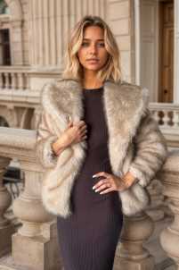 Pelliccia sfumata, chiusura bottone, maniche lunghe collo revers.