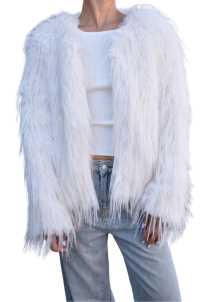Pelliccia pelo lungo, girocollo, chiusura con clip.