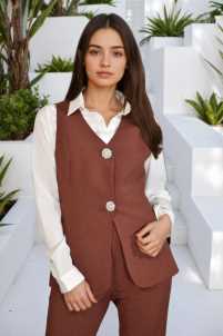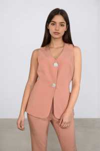 Gilet completo Federica, leggermente svasato, scollo a V e chiusura con bottoni gioiello a clip.