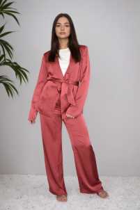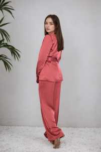 Pantalone simil raso completo Julia, modello a palazzo, chiusura con zip.